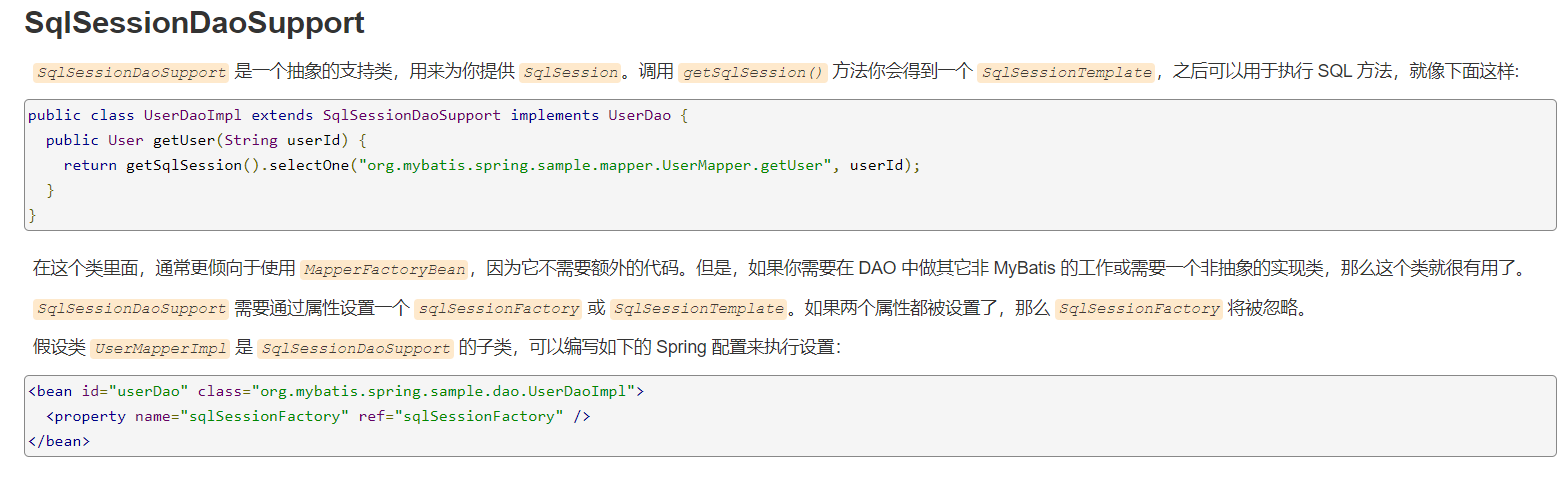 dao继承Support类 , 直接利用 getSqlSession() 获得 , 然后直接注入SqlSessionFactory . 比起方式1 , 不需要管理SqlSessionTemplate , 而且对事务的支持更加友好 . 可跟踪源码查看